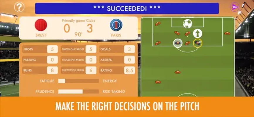 Make the right decisions during matches (passing, partner selection, running, shooting) based on your position on the field and that of your teammates and opponents.