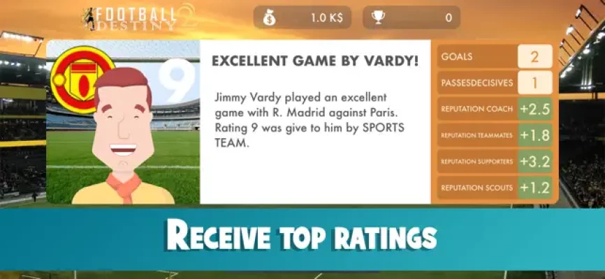 In Football Destiny 2, you start your career in a low-level club with no reputation and low-value attributes. But train hard and make the right decisions on and off the pitch and the doors to the big clubs will open for you.