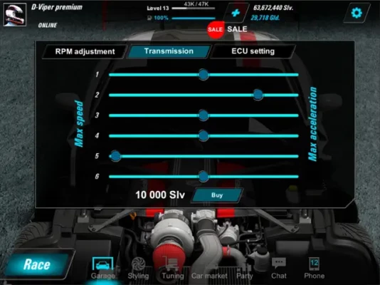Customize the speed, set parameters for each transmission, do not forget to flash the ECU and you will be the fastest racer!