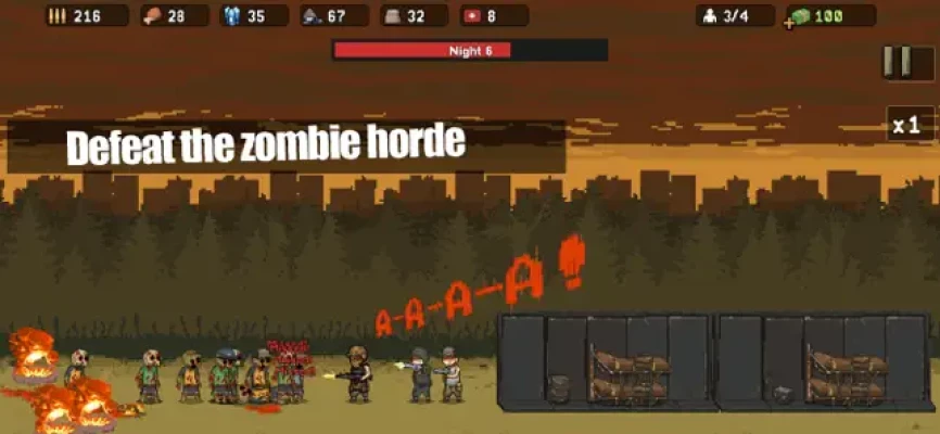 Defend your base and don’t let the hungry horde eat the living! Assault enemy bases on your way and set up the battle camp to your advantage. Gather your team of survivors and send them into battle, use any means necessary to ward off the horde of pixel crazed flesh eaters! Slash, shoot or burn the dead with barrels, Molotov cocktails, and grenades.