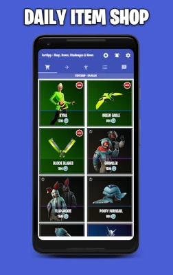 Check the Daily Item shop, track your Challenges, and stay informed about everything happening in your favorite game, without needing to open the game! With FortApp, you'll have access to the latest News, Items, and much more, all in real-time and at your fingertips.
