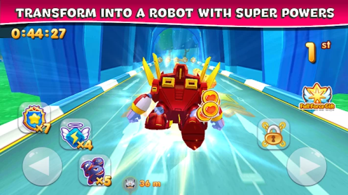 Race on a variety of cool tracks and with a variety of vehicles that transform into powerful robots, and become the winner of this amazing car racing game in amazing 3D!