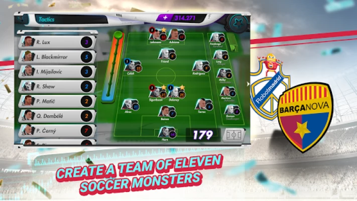 You are the heir to a Futuball club and DNA samples from the old world’s biggest football legends. You must use this to build and manage a team of the eleven most monstrous and efficient robots ever created in a lab to become the best soccer manager of the future!