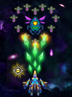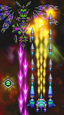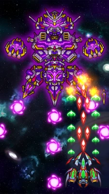 - Epic and huge bosses: Show-off your skills. Enjoy arcade galaxy shooter game space combat - powered up