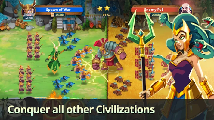 Immerse yourself in an epic universe with a beautiful story as you unlock unique Heroes from legendary civilizations, each with its fantastic set of skills. You will enjoy the company of epic Heroes, mythical creatures, and gods alike who will rally to your cause and trump your rivals in the clash of powers.
