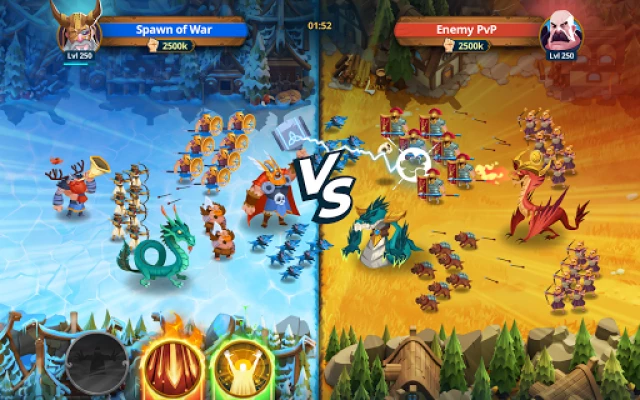 Your mythic heroes will jump into the battle and fight their way to victory without your guidance. Take over the reins at the beginning of the battle when you decide where each hero or unit will take their place. Position beefy brawler Minotaur in front of the army, then place the Erinyes, stealthy creatures with sharp blades that can teleport behind enemy lines. Mix and match the mythic Heroes and units until you feel it in your bones that you got the perfect team roster.