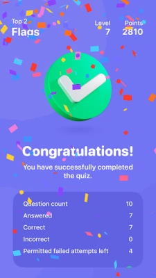 The app includes challenges in the following categories: - Countries of the continents - Capitals of the continents - Flags of the continents - Metropolises of the continents - U.S. states - Mountains of the continents - Rivers of the continents - Tourist attractions of the world - Oceans of the world