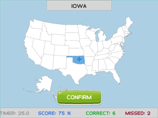In Geography Map Trainer, all of the difficulty levels (easy, normal, and hard) have the same timer and the same maximum number of misses. How they differ is by the number of countries included in each difficulty level.
