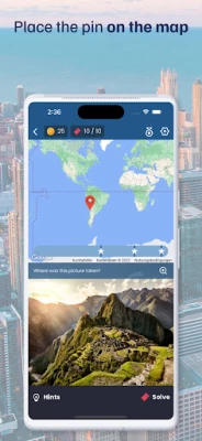 With these engaging image-based challenges, you can put your geographic knowledge to the test. Geography Quiz challenges you to locate specific locations on a map for fascinating photographs from around the globe. Swipe, zoom, and pan to examine the details and form reliable conclusions. The game's user-friendly UI and simple controls make getting started a pleasure.