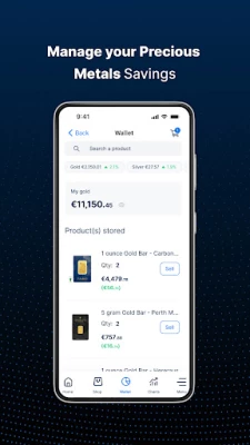 The first-ever app in Europe to buy, store, and sell physical precious metals! Trusted, transparent, and user-friendly: build your savings with the GOLD AVENUE app.