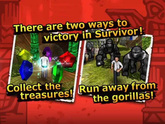 When the game starts, one "survivor" is chosen from among the four players. The gorilla wins by capturing the survivor, and the survivor wins by running away from the gorilla until the end of the game.
