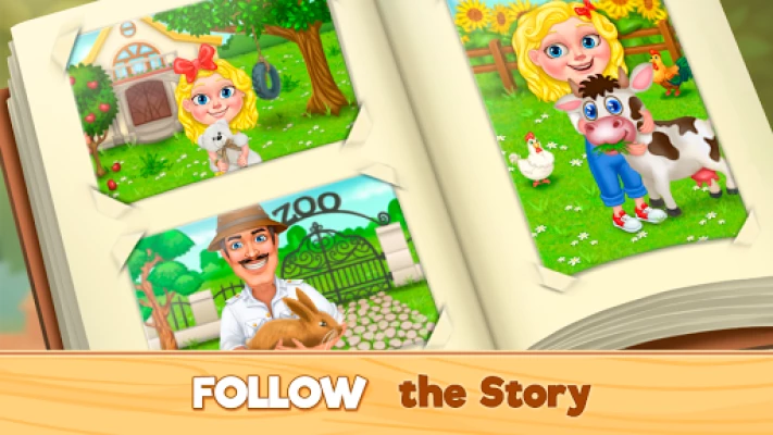 Play and win colorful match-3 levels to decorate and restore areas in the farm. Design a new home, choose exotic and wonderful exterior and interior pieces of furniture. Unlock new areas of the farm story, become friends with all the characters in the game!