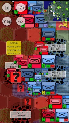 Additionally, the strict Soviet doctrine for defense calls for going on the offensive if the USSR is attacked, so moving the combat units towards the rear area is not allowed during the first turns without a special "Allow Withdrawal" resource.