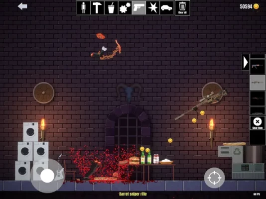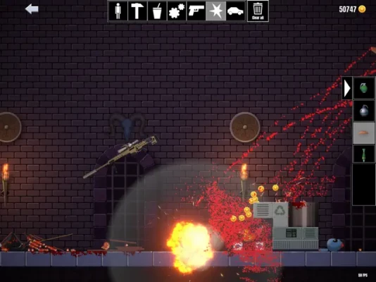Diverse items to smash, slash, slice, and obliterate ragdolls, crush bones, and spill guts