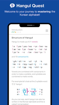 Are you in search of a fun Korean language learning app that covers Hangul alphabet with Korean letters, Korean writing and Korean characters? Well, Hangul Quest is the perfect choice.