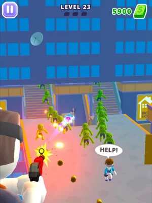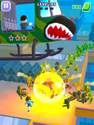 • Complete levels to upgrade your guns, outfit, and helicopter, and advance through the districts of the city to reach awesome boss levels with extra rewards. Try out pistols, shotguns, assault rifles, SMGs, and even rocket launchers to find the gun that helps you put an end to most zombies.