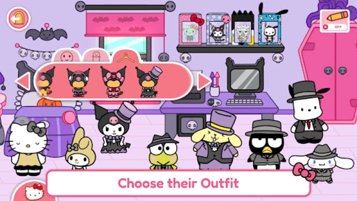 Design your dream home and explore exciting locations: from themed houses for Hello Kitty, Kuromi or Pompompurin to the glamorous Ribbon’s Club nightclub with red carpet, flashing lights, dance floor, DJ booth and VIP area. Mix furniture, colors and decorations to create unique rooms: living room, bedroom, bathroom, kitchen and garden… now with spaces for your pets too!