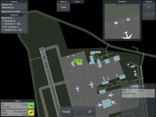 Features - Give pushback, taxi, holding and take-off clearances. - Handle emergencies and try to release all flights on time in order to release the next level.