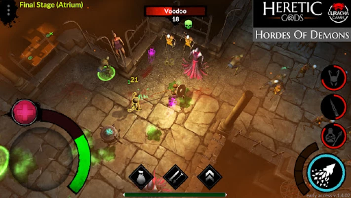 The control system of Heretic Gods is intuitive and is very well adapted to tactile devices. With the virtual crossbar on the left of the screen you can move your character, while with the buttons on the right you can attack and use skills. With just pressing the attack buttons, your hero will automatically target the nearest enemy.
