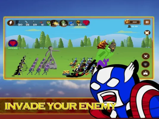 Hero Stick war battle is a war game extremely interesting and attractive. Players will play the hero stick war game. Fight yourself against the legion zombies. play in tournaments against stickman superheroes with power