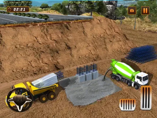 Drive various heavy vehicles like excavators and cranes to dig the ground. Once the digger digs the ground you have to transport the mixer to pour cement and build the pillars. Once the pillars are completed you have to transport the bridge parts and then you have to complete the bridge. These bridges will fill the gap on the road ways.
