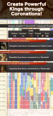 In History Conqueror II, you can now choose from over 140 kingdoms, empires and republics with more than 300 kings appearing in the game! Win the historical battles and world war, defeat and clash other nations, states, clans and civilizations with your army to be the only and the top ruler in the history of mankind!