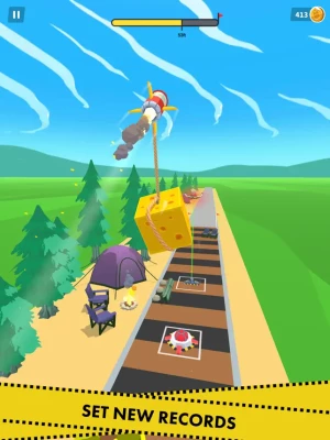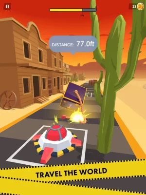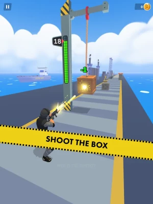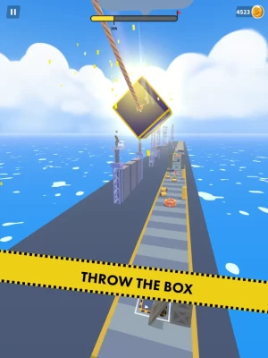 Shoot the box to swing it. Time your shots, and make the box fly! Reach the finish line to pass the level.