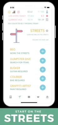 Enter the world as a homeless hobo, beg on the streets or get hired for graffiti, go to university, invest in the market, sell real estate, buy businesses, become a tycoon and more!