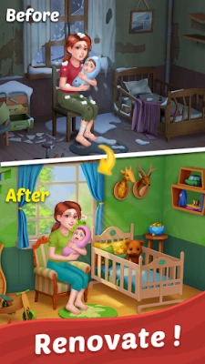 Help Emma restore her grandpa’s old house and restaurant business to its former glory using challenging match puzzles games. Beat colorful match-3 levels to renovate and decorate rooms in the mansion makeover, unlocking even more chapters in the exciting romantic story and vibrant characters along the way!