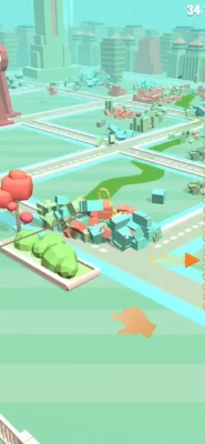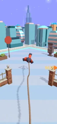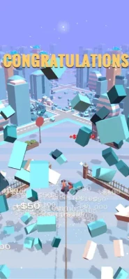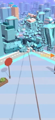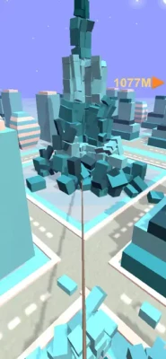 Fire your hook towards the monument in the middle and tear down the buildings to earn big money.