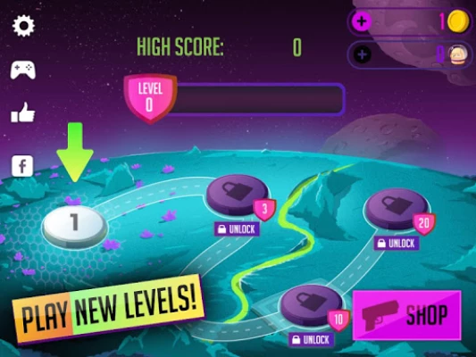 A weird abandoned planet, monsters lurking in the dark, and bright glowing lights... Could this planet be the end of the journey for the cute little Blobs? How long can you survive in this shooting game?