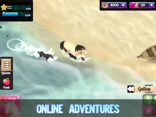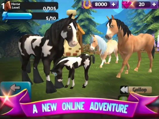 Welcome to the online wild horse adventure of your lifetime! Start your journey in a mystic forest and explore different worlds such as paradise islands and magical caves by completing a variety of challenging quests. Level up and unlock over 30 different horse breeds and take them out into the online world.