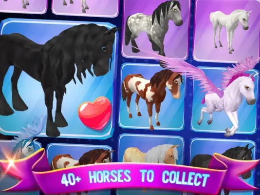 Over 30 breeds await! Unlock new horses and bring them into your family. Play as a Mustang, Stallion, Clydesdale, and even the most beautiful horses such as the Friesian, Shetland Pony and baby Foal. Progress through the game and earn amazing fantasy horses such as a flying Pegasus, Unicorn and much, much more!