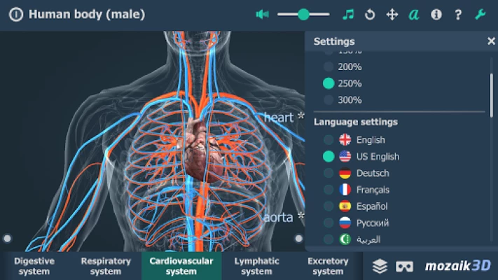 Our fully interactive scenes can be rotated, enlarged or viewed from pre-set angles. With the predefined views, you can easily navigate through the complex scenes. Some of the 3D scenes contain a Walk mode, enabling you to explore the scene yourself. Most of our 3D scenes include narrations and built-in animations. They also contain captions, entertaining animated quizzes and other visual elements. The 3D scenes are available in several languages, which also offers an opportunity to learn and practice foreign languages.