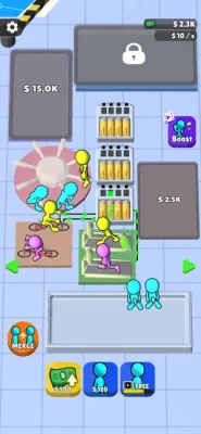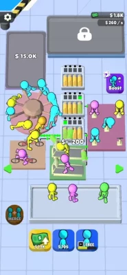 Use the electricity you generate to earn even more money, which you can use to hire more people or upgrade your facilities. Merge people of the same color to create even more powerful employees!