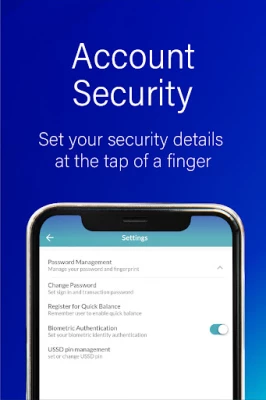 16. Preference and settings:- Change password, Setup biometrics and Set USSD password