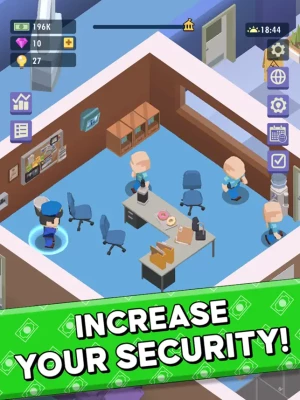 Use Money to upgrade your premises and hire security staff to prevent heists. The security staff will counter the Bank robbers in case of robbery.