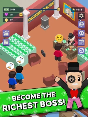 Upgrade the equipment to increase efficiency and make sure the operations run smoothly. Make the right financial decisions and use money wisely to expand the bank. Unlock the money vault and cash printing department to Grow your Business & become a Billionaire.