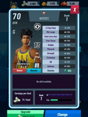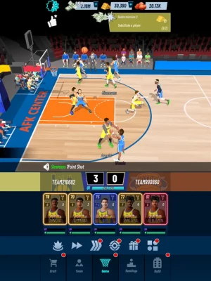 Recruit legendary players to match your team's strategy and dominate the court with your unique tactics. Choose your playstyle, from 90s classics to modern fast breaks.