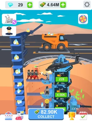 You operate a mining company. Your task is to continue to excavate ore from the mine, then sell ore to obtain profits.You can upgrade your mining equipment to speed up efficiency, and you can unlock new devices to collect different ore, advanced ore has higher value.You can also hire administrators to help you manage, they can improve your income and efficiency.Finally, let us build the world's largest excavation company!