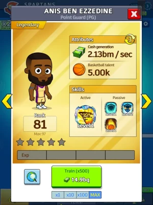 ▪ TRAIN your players and upgrade their basketball skills (shooting, passing, dribbling, defense…) to multiply their value and the money they generate