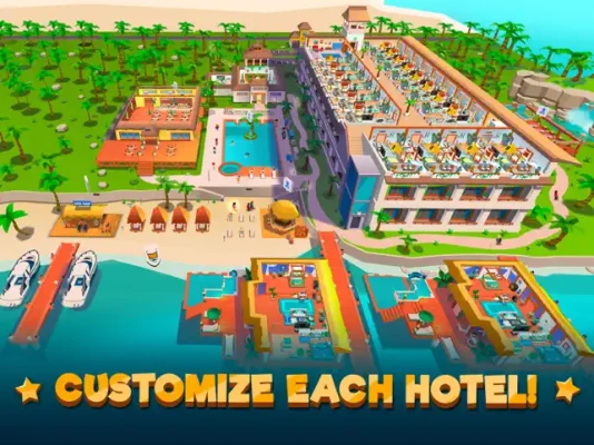 Be the perfect host to your clients and customize your facilities, offer delicious meals and drinks, expand the swimming pool, keep the rooms clean and build competitive suites. Take advantage of your idle activity and reinvest your earnings with a business vision.
