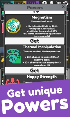 Idle Superpowers is a roguelike idle rpg where you are a superhero who can get multiple superpowers that are combinable and synergize with each other!