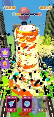 Tap fast to increase your tornado's size & abilities and FIRE it UP.