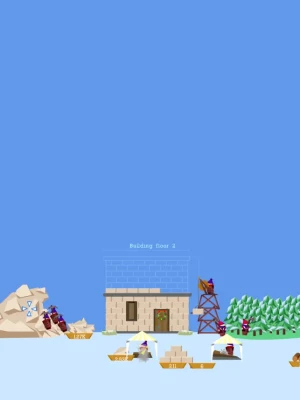 You build the tower by mining resources in the quarry and processing it to create bricks. Every next floor of the tower needs much more bricks, so, upgrade your production facilities wisely.
