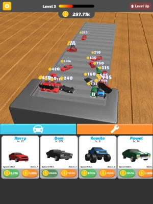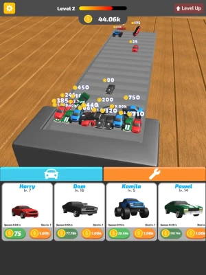 How many cars can you fit on the treadmill? Are you a treadmill boss? Tap on the cars to push them off the treadmill, and use your coins upgrade your cars!