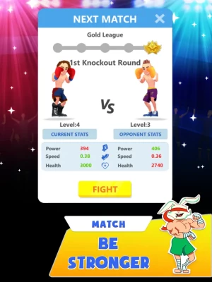 Access a diverse store offering a wide range of equipment, including dumbbells, weights, exercise bikes, stimulants, and potions to enhance your workouts. Unlock numerous golden equipment pieces as you strive to become a champion in the ring. Enhance your boxer's stats and abilities, advancing step by step, punch by punch, round by round.