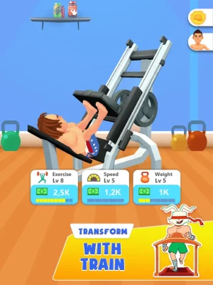 Engage in gameplay with rewarding activities such as Biceps Curl, Leg Press workouts, and participate in pull-up and Barbell squat competitions. Level up and strengthen your muscles as you progress, earning status points to boost your character's strength and stamina. Explore a diverse range of packages to optimize your workouts.