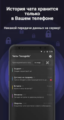 Инкогнито приват мессенджер - первый в мире мессенджер без идентификации пользователя. Приложение позволяет общаться без отправки смс для подтверждения вашего номера и сканирование списка номеров телефонной книги. Просто создайте чат и пригласите одного или несколько собеседников. Подключиться к чату возможно по ссылке, по коду или отсканировав QR код.