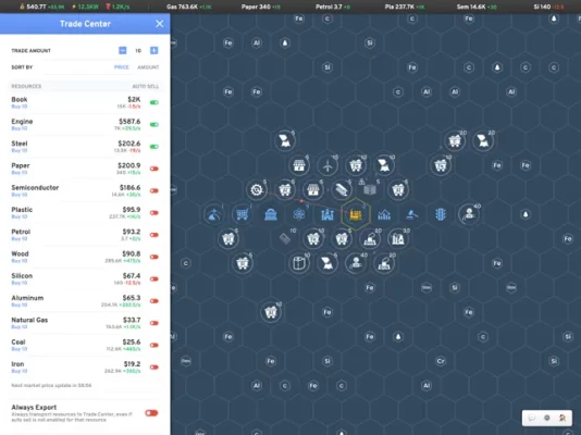- 85+ different resources to produce, buy and sell